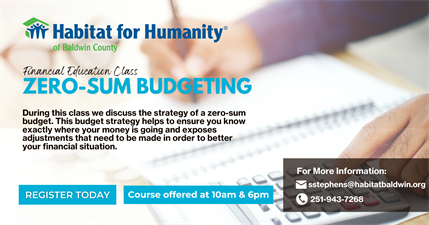 This financial education class is called "Zero-Sum Budgeting". During this class we discuss the strategy of a zero-sum budget. This budget strategy helps to ensure you know exactly where your money is going and exposes adjustments that need to be made in order to better your financial situation.